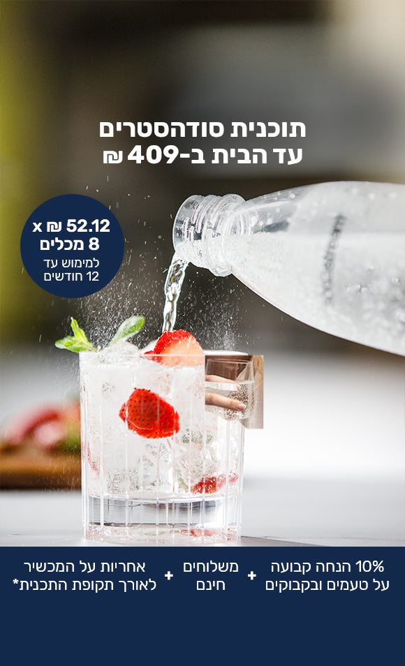 ככל שבבעלותך מכשיר סודהסטרים קיים מסוג: Power, Crystal, Spirit One Touch, Spirit ,Source, Jet, Genesis, Duo, Art, E-Terra ,Terra תכנית המנויים מזכה אותך באחריות בגין המכשיר גם אם תקופת האחריות הרשמית פקעה. האחריות כאמור תהא בתוקף לאורך כל תקופת תכנית המנויים, ותפקע בסיום תכנית המנויים מכל סיבה שהיא. מובהר, כי במידה ותרכוש חבילה משולבת של החלפת מיכל גז ומכשיר סודהסטרים, תקופת האחריות תחול כל עוד תכנית המנויים תהא בתוקף או למשך שנתיים, המאוחר מביניהם. שים לב כי לא תוכל לממש את האחריות כאמור עבור מכשיר קיים שפגה לו תקופת האחריות המקורית במהלך שלושים (30) הימים הראשונים לתקופת החברות בתכנית.