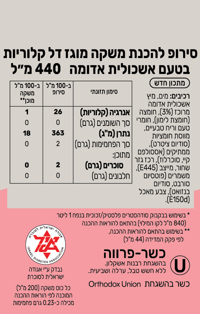 בקבוק טעם באריזה חדשה בנפח 440 מ״ל (במקום 500 מ״ל) במתכון חדש