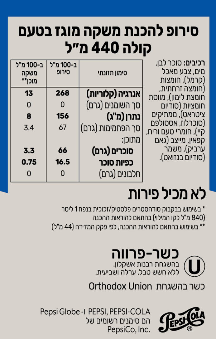 תהנו ממשקה מרענן בטעם קולה ®Pepsi הנהדר והמוכר, בטריות אופטימלית ורמת הגזה מושלמת בכל רגע שרק תרצו.