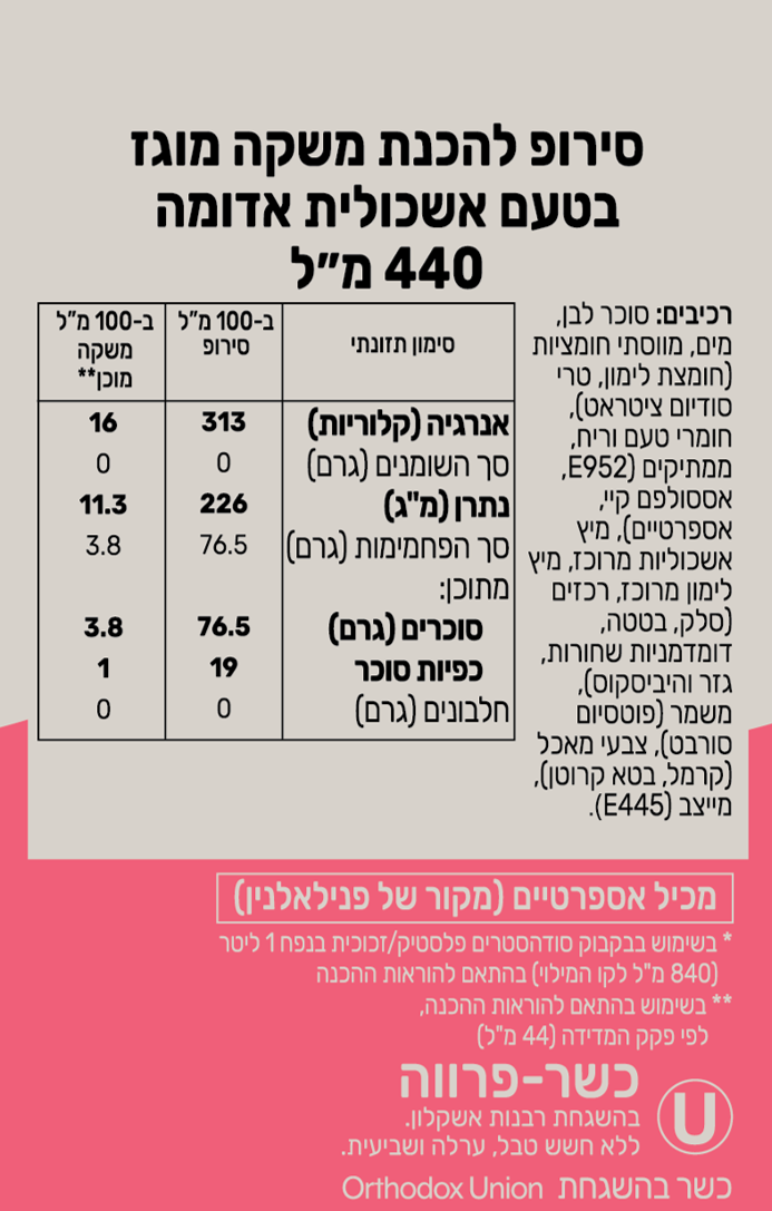 בקבוק טעם באריזה חדשה בנפח 440 מ״ל (במקום 500 מ״ל)